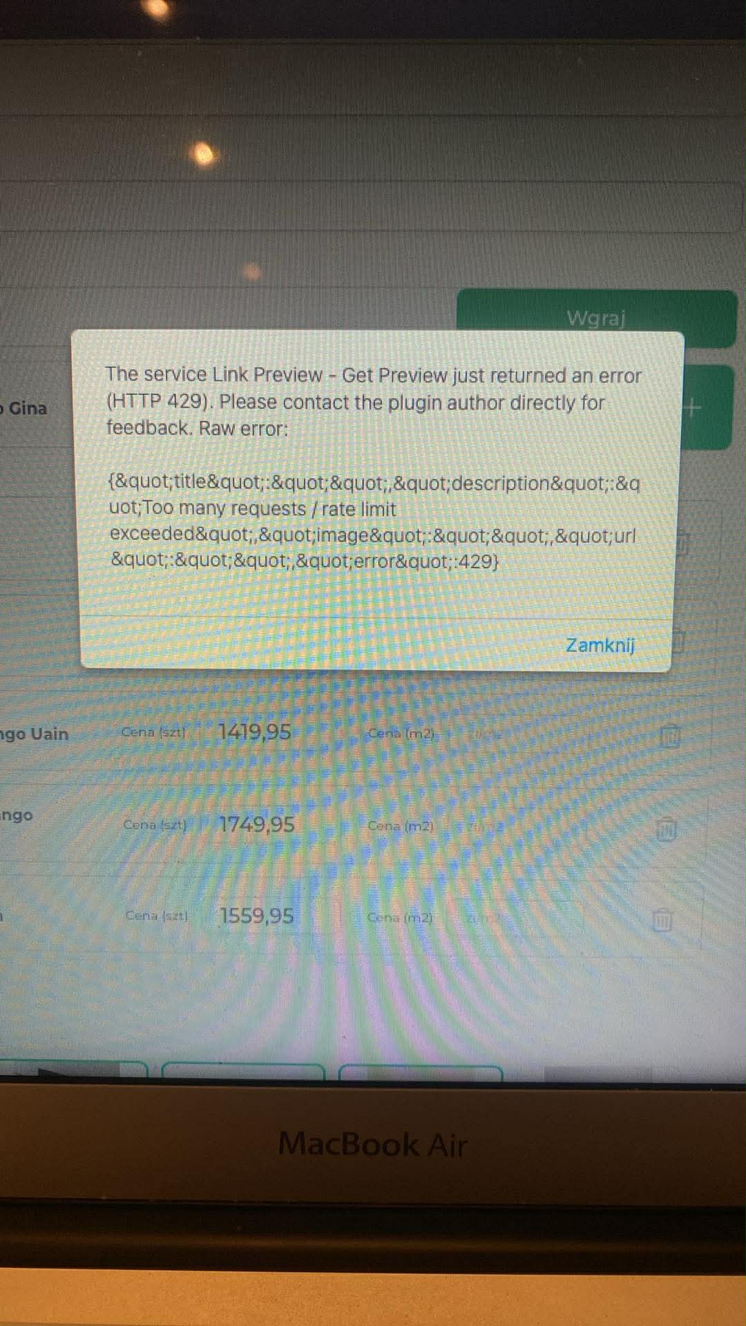 The 429 “Too Many Requests” error doesn’t come from Bubble or from us, it’s returned directly by the external preview provider when too many URLs are requested within a short period. Since your users may upload many products at once, the provider rate-limit is reached quickly.