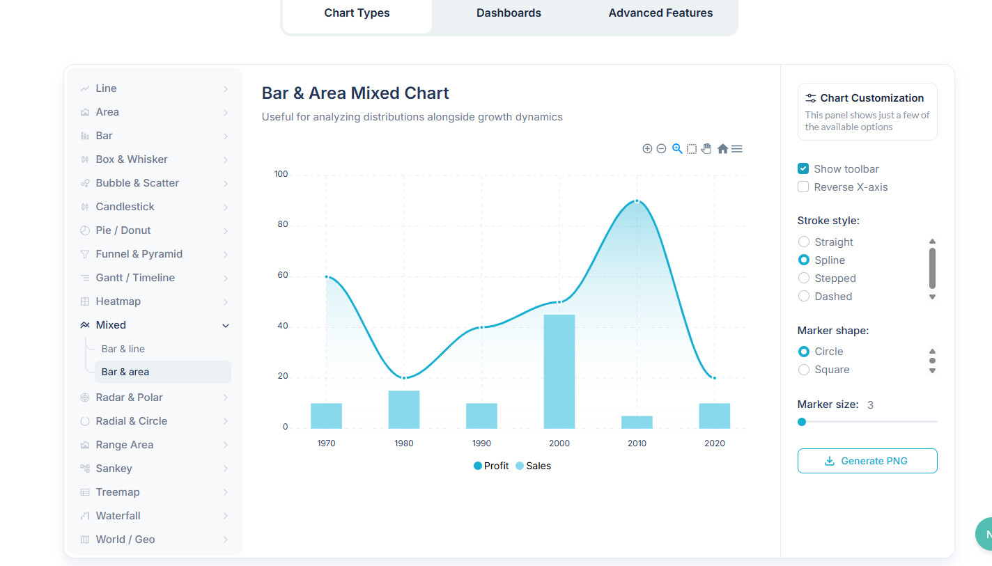 Mixed Chart (Line/Area/Bar)