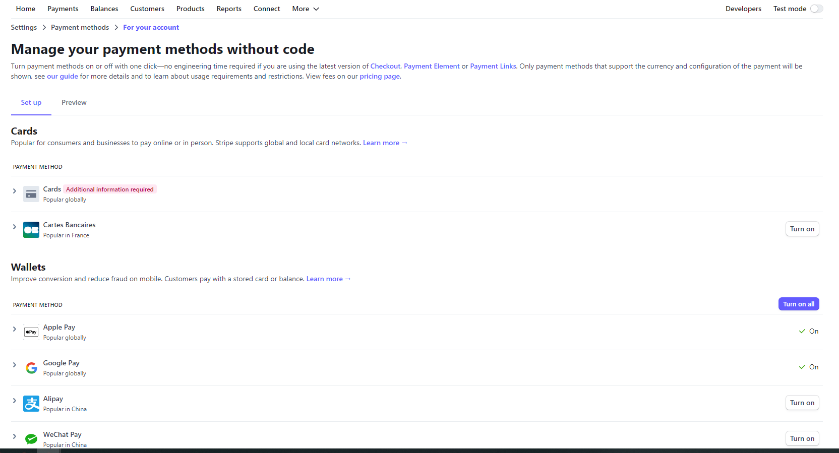 You can add payment methods right from the Stripe Dashboard