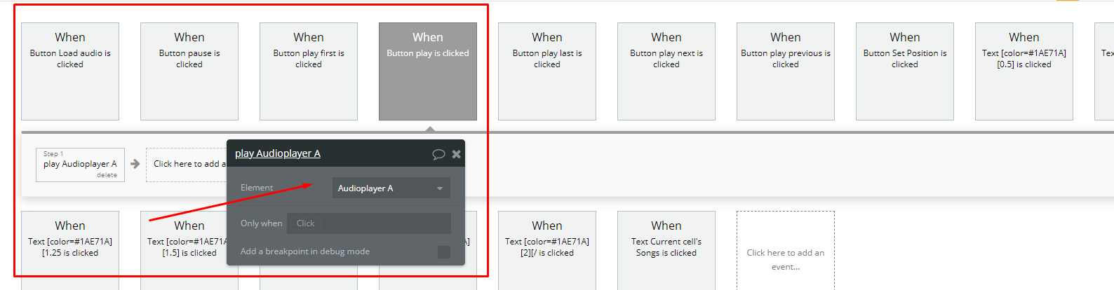 - I set up the plugin and the wf so that if I click on a cell of the rg I can listen to the remaining audio files from this point up to the end