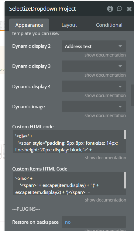 If the Selectize is inside a RepeatingGroup, use the plugin’s RG section: