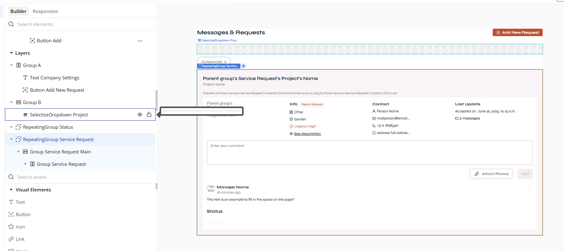 - On your RepeatingGroup, set ID attribute (e.g.