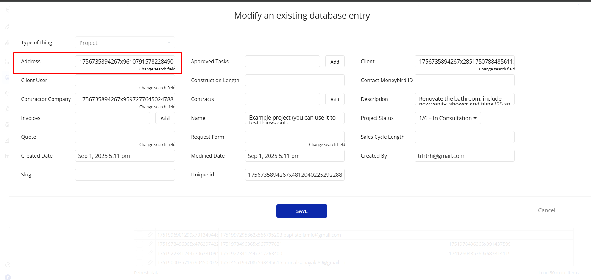 2) Show multiple fields (Name + Address) in the dropdown