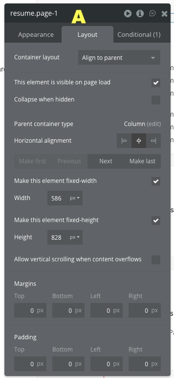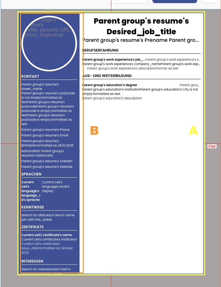 I changed the background color of A and resume.page-1 to red so that it is easier to see where the error might be in the PDF.